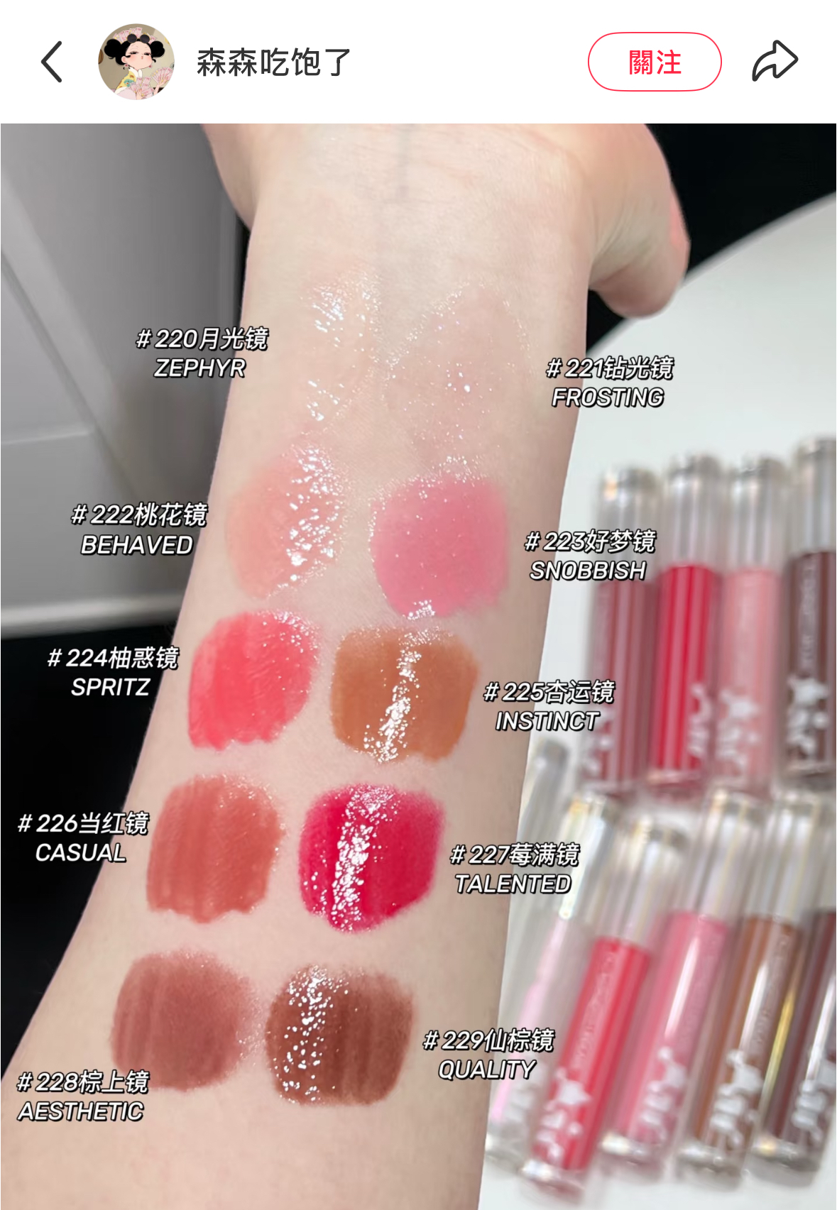 MAC的超透亮冰晶潤唇露(Lipglass Air Non-Sticky Gloss)是一款輕盈、不黏膩的高光澤唇蜜,