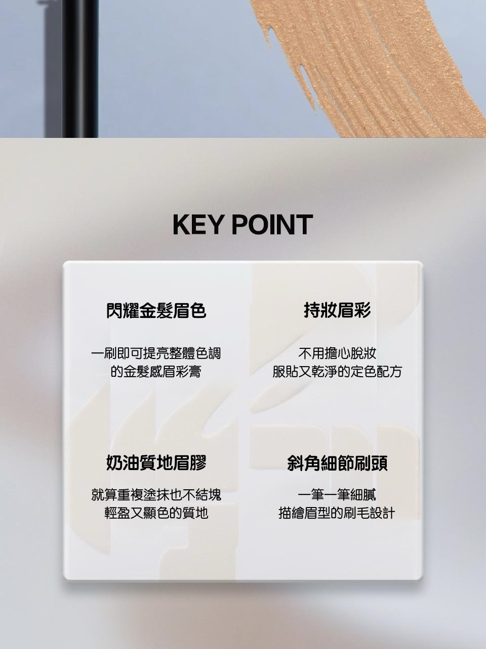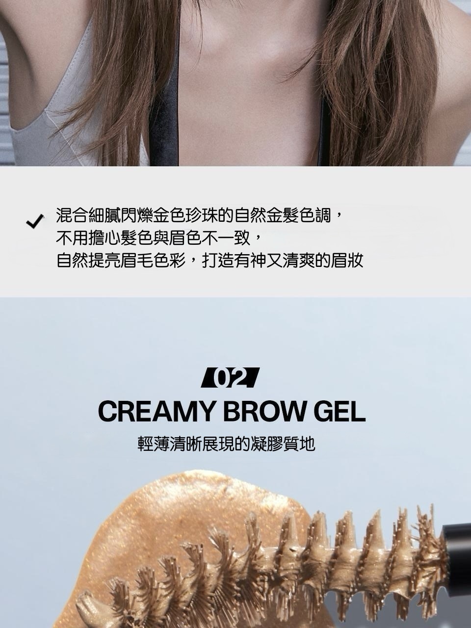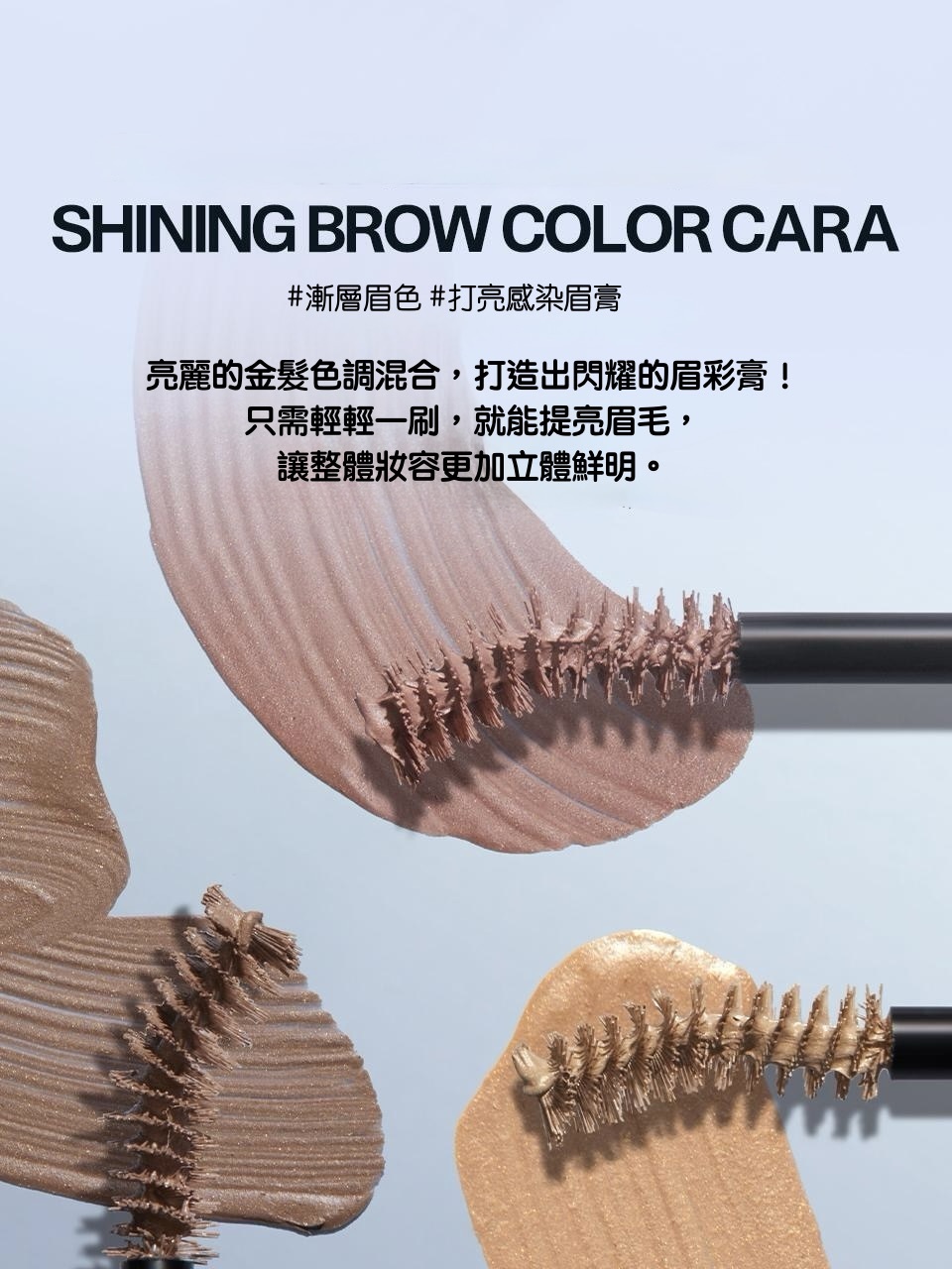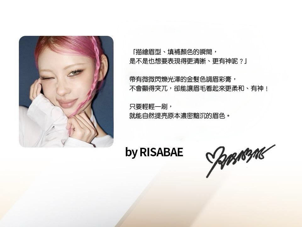 這款染眉膏結合柔霧金系色調與細緻珠光,賦予眉毛自然光澤與輕盈立體感。
