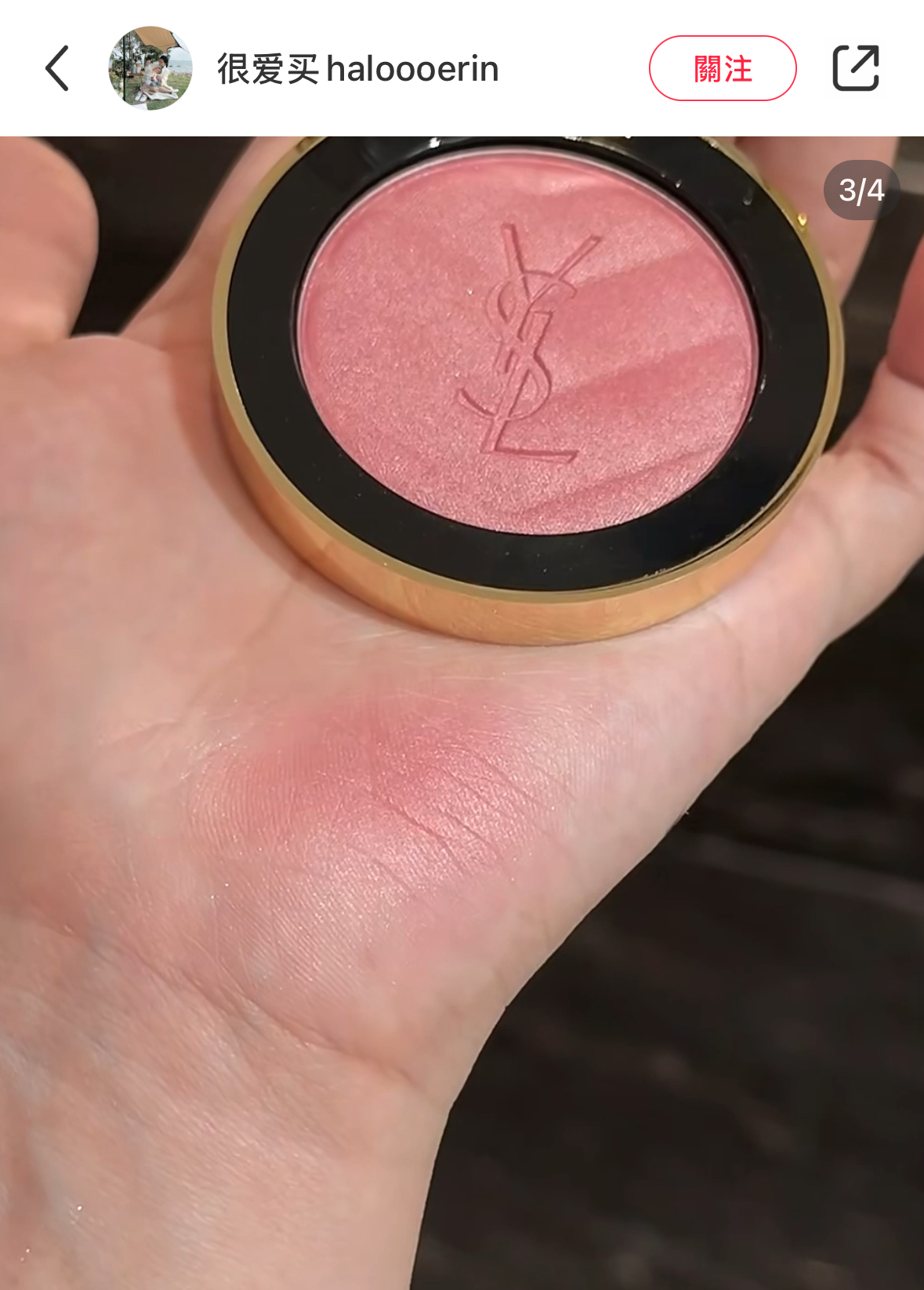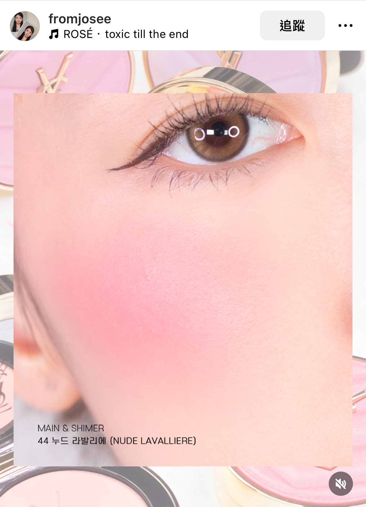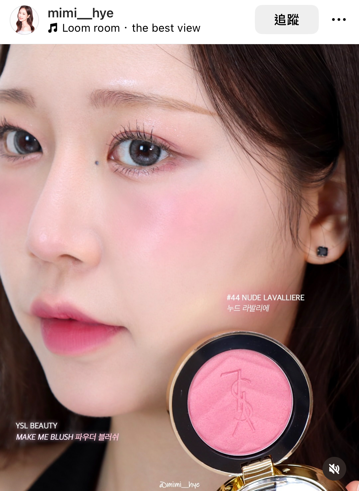 在粉狀腮紅中44帶一點細閃 一樣是很漂亮的玫瑰色