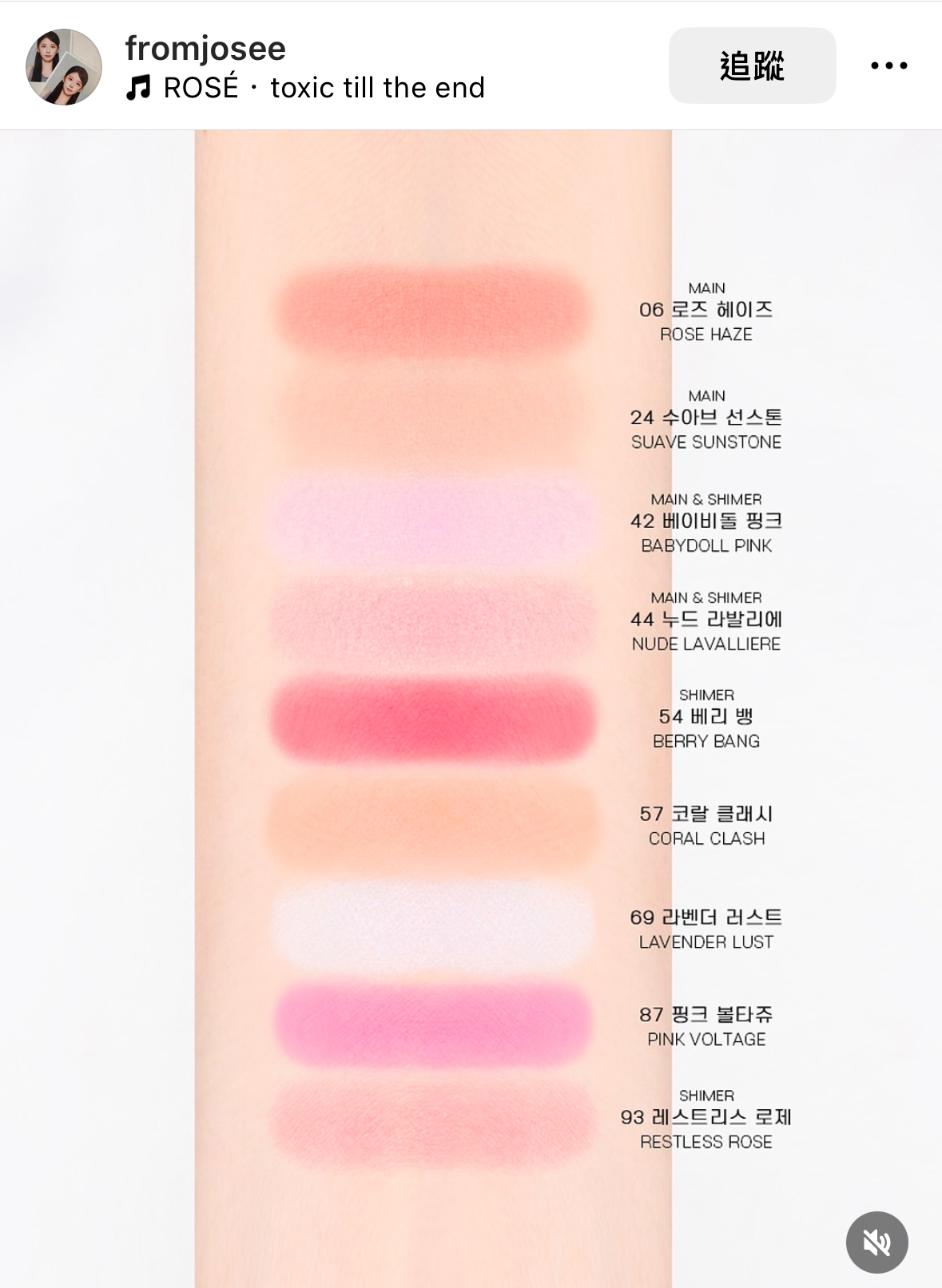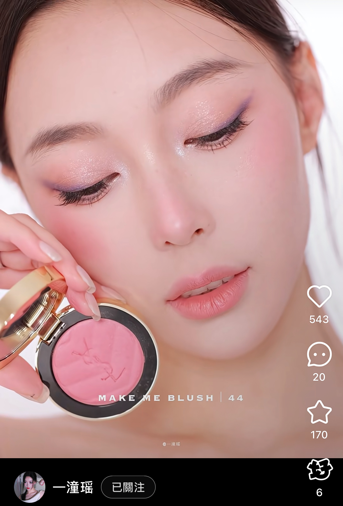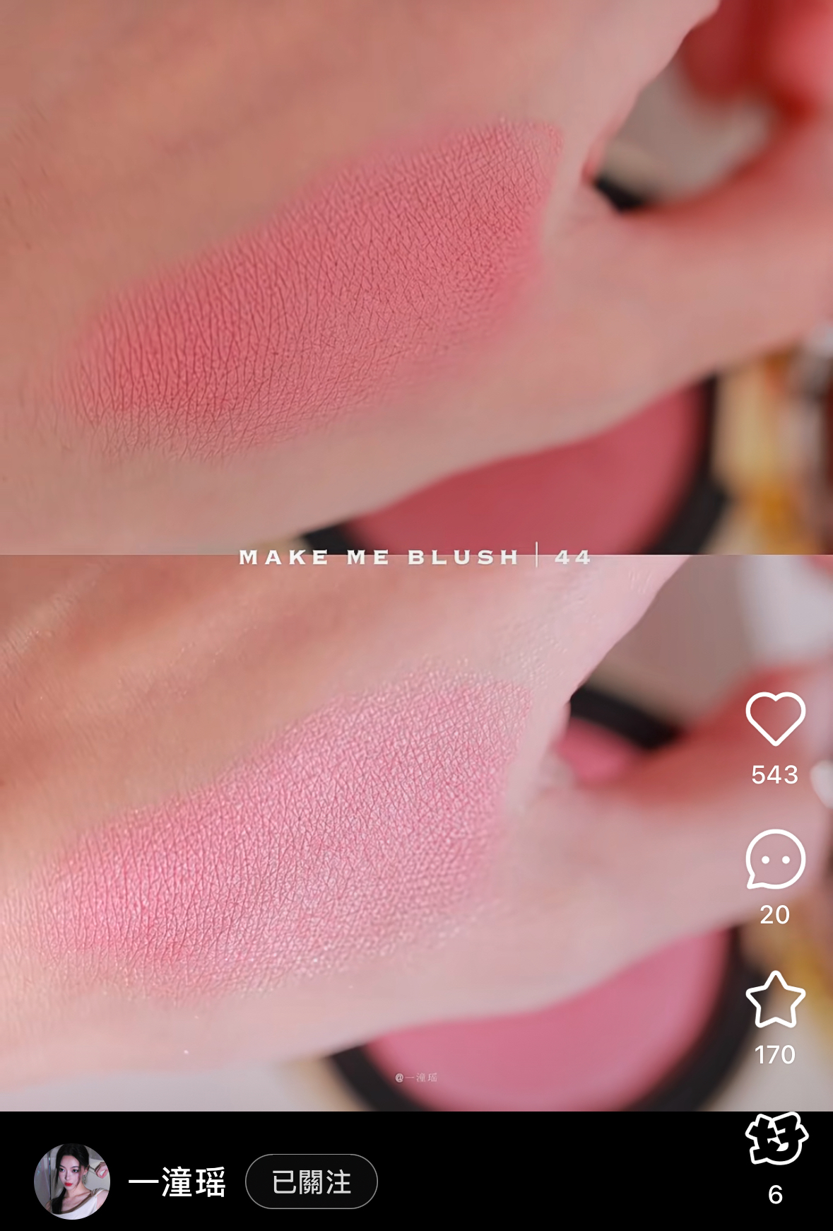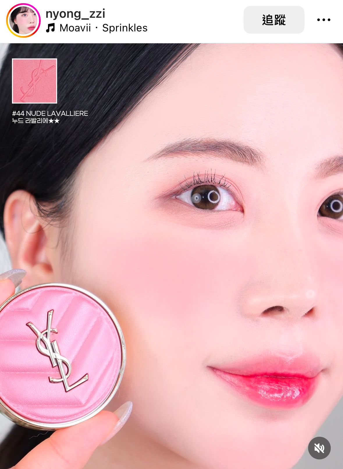在粉狀腮紅中44帶一點細閃 一樣是很漂亮的玫瑰色